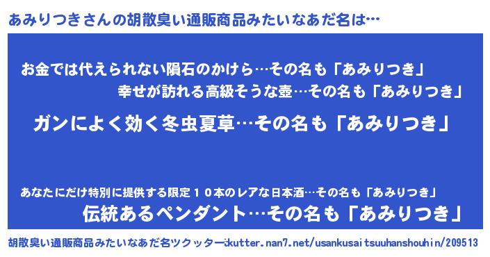 | 意味不明あだ名 | 『自称あみりつき』 |