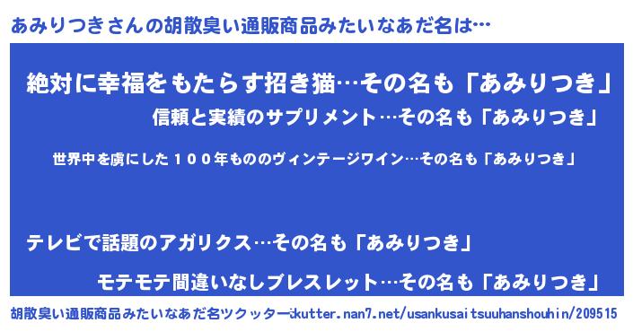 | 欧米人風あだ名 | 『ダレノガレあみりつき』 |
