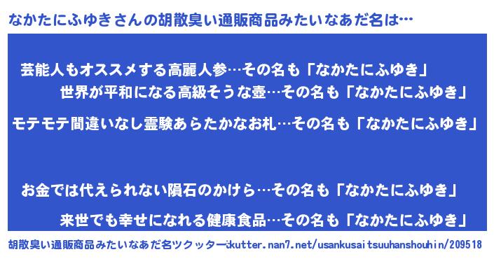 | ヘコむあだ名 | 『なかもー』『なかたにふゆき(小並感)』 |