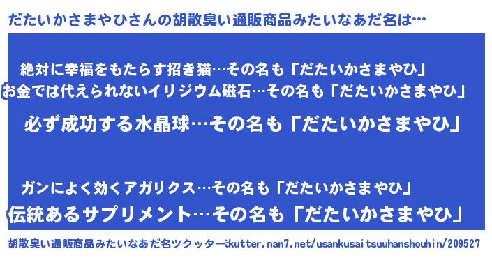 | ヘコむあだ名 | 『だたにゅー』『だたいかさまやひ(笑)』 |