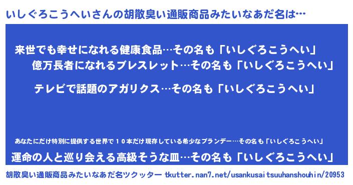 | 意味不明あだ名 | 『自称いしぐろこうへい』 |