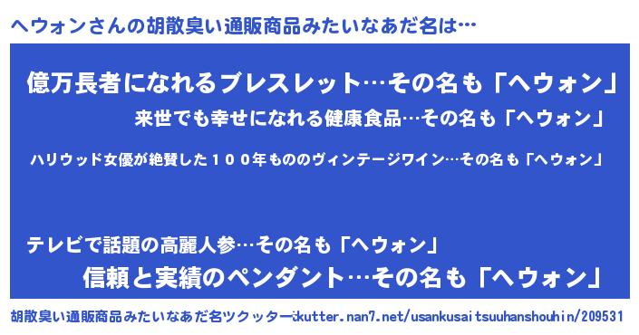 | 意味不明あだ名 | 『住所不定無職ヘウォン(6歳)』 |
