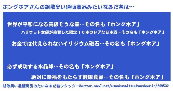 | ヘコむあだ名 | 『豆乳』『ホングホア(笑)』『ホンお』 |