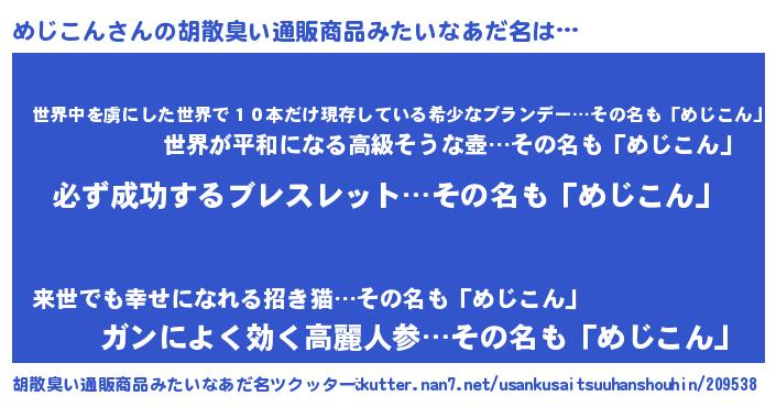 | ヘコむあだ名 | 『めじにー』『なまこ酢』『めじ太郎』 |