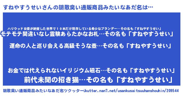 | 意味不明あだ名 | 『すねやすうせいフォーエバー』 |