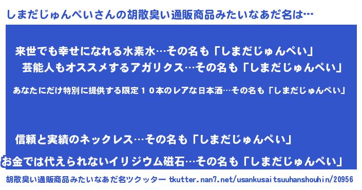 | 意味不明あだ名 | 『住所不定無職しまだじゅんぺい(40歳)』 |