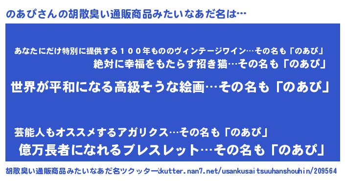 | 男性向けラノベタイトル風あだ名 | 『やはりのあぴの青春ラブコメはまちがっている 』 |