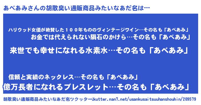 | ヘコむあだ名 | 『あべあみ(遠い目)』『あべにー』 |