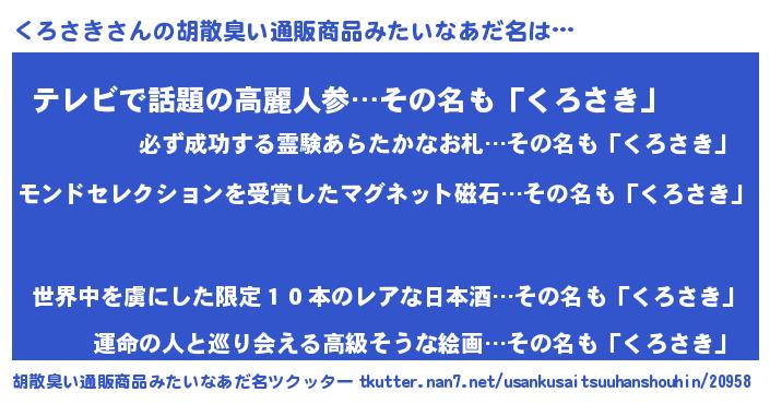 | 意味不明あだ名 | 『ヨモギ科くろさき属』『自称くろさき』 |
