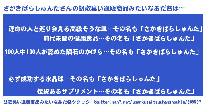 | 男性向けラノベタイトル風あだ名 | 『緋弾のサカキバラシュンタ』 |