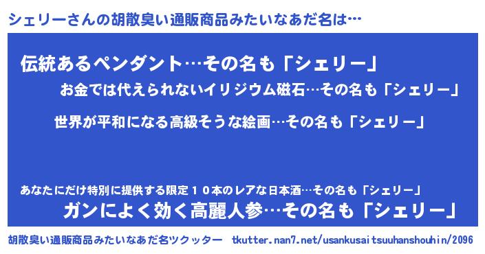 意味不明あだ名 | 『シェリーフォーエバー』『自称シェリー』 |