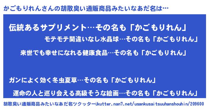 | 意味不明あだ名 | 『永久保存かごもりれん』 |