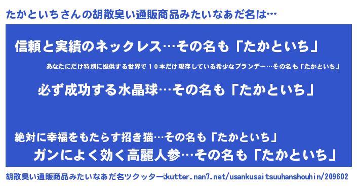 | 意味不明あだ名 | 『ペロリンたかといち』『自称たかといち』 |