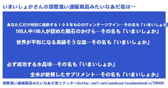 | 肩書あだ名 | 『いまいしょか大将』『いまいしょか機長』 |