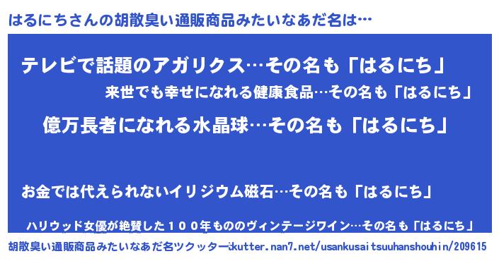 | 意味不明あだ名 | 『つくし科はるにち属』『自称はるにち』 |