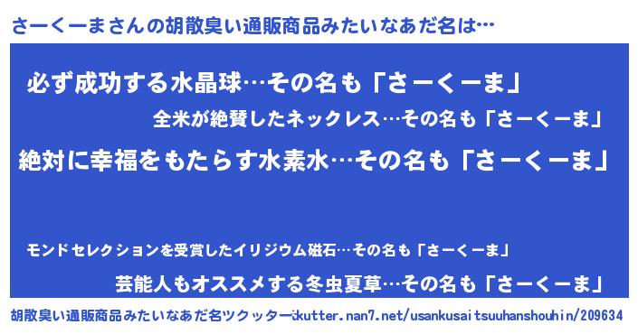 さーくーまさんの胡散臭い通販商品みたいなあだ名をツクッター!