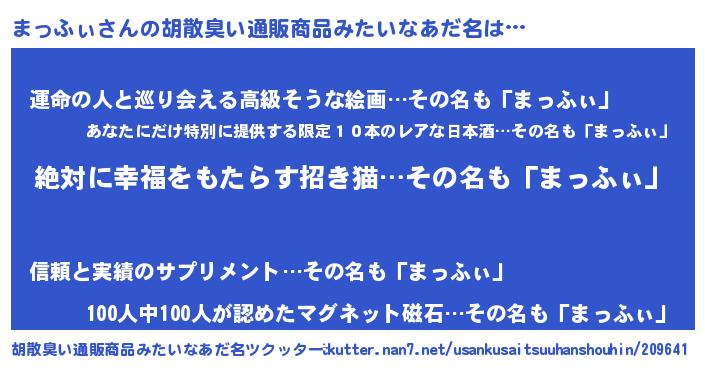 | 意味不明あだ名 | 『永久保存まっふぃ』 |