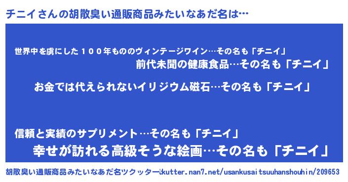 | 肩書あだ名 | 『チニイディレクター』『チニイ教授』 |