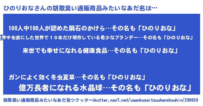 | 意味不明あだ名 | 『永久保存ひのりおな』『自称ひのりおな』 |