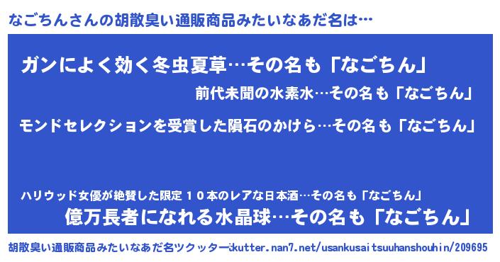 | 女子向けラノベタイトル風あだ名 | 『死神なごちんの再婚』『闇のなごちん』 |