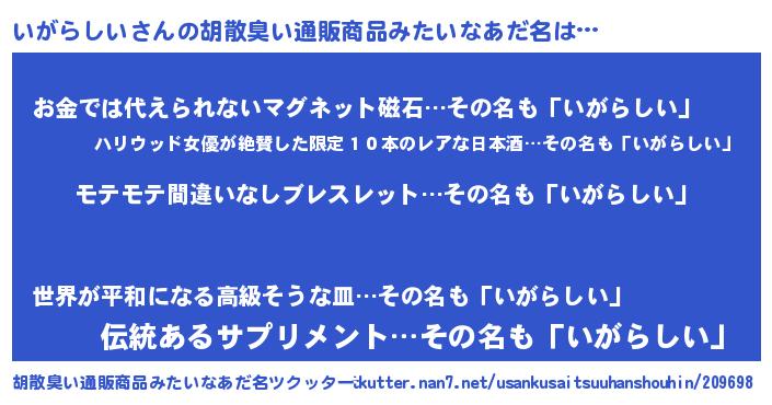| ヘコむあだ名 | 『いがにー』『いがっ子』『レバニラ』 |