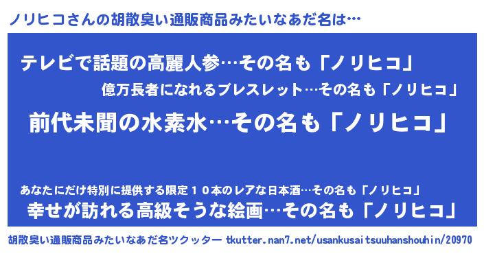 | ヒーロー風カッコイイあだ名 | 『ネオノリヒコ』『超時空戦士ノリヒコ』 |