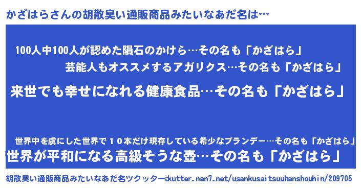 | ヘコむあだ名 | 『かざはら(爆)』『つくし』 |