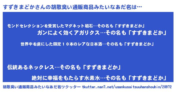 すずきまどかさんの胡散臭い通販商品みたいなあだ名をツクッター!