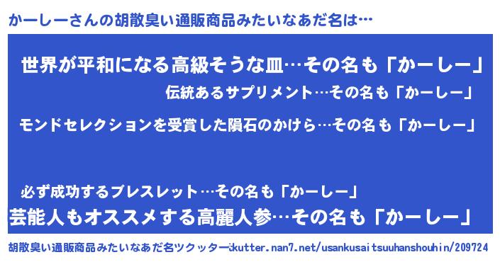 かーしーさんの胡散臭い通販商品みたいなあだ名をツクッター!