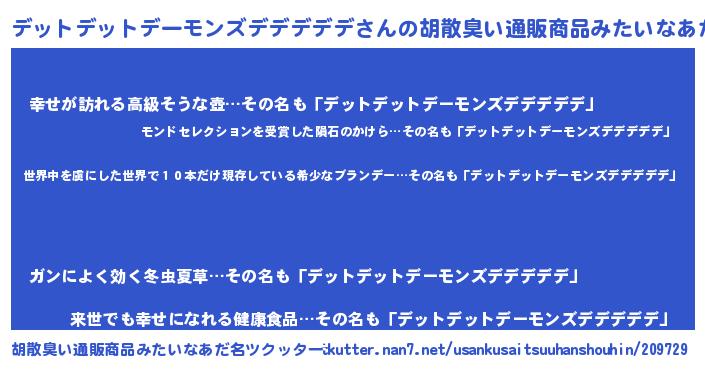 | 意味不明あだ名 | 『住所不定無職デットデットデーモンズデデデデデ(93歳)』 |