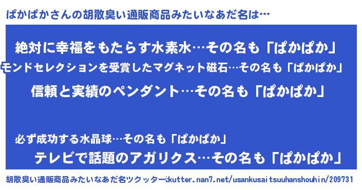 | 意味不明あだ名 | 『とにかく怪しいぱかぱか』 |