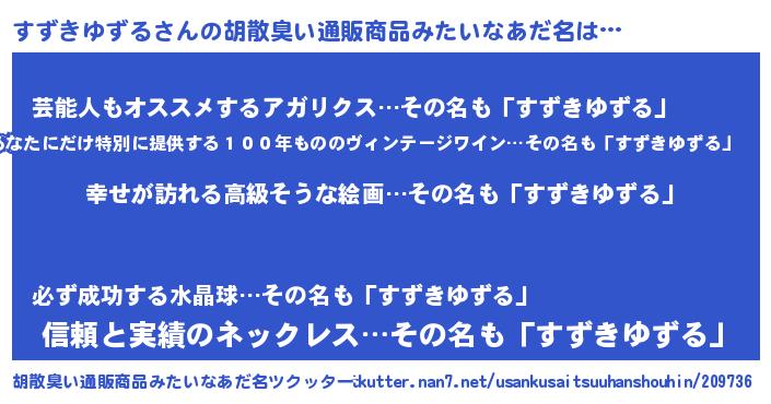 | ファンタジー風あだ名 | 『エターナルスズキユズルー』 |