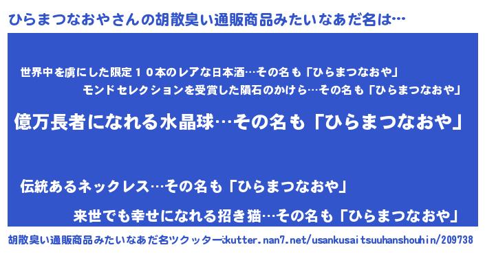 | ヘコむあだ名 | 『ひらもー』『ひらまつなおや(苦笑)』 |