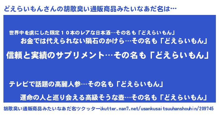 | 意味不明あだ名 | 『とにかく怪しいどえらいもん』 |