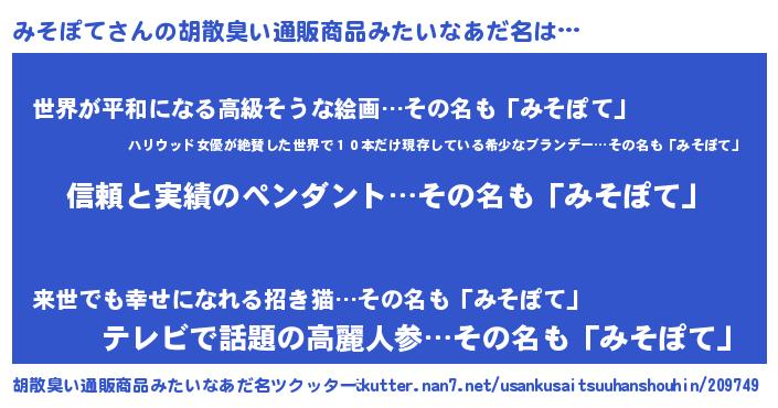 | 肩書あだ名 | 『みそぽて塾長』『みそぽて大尉』 |