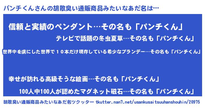 | 意味不明あだ名 | 『住所不定無職パンチくん(79歳)』 |
