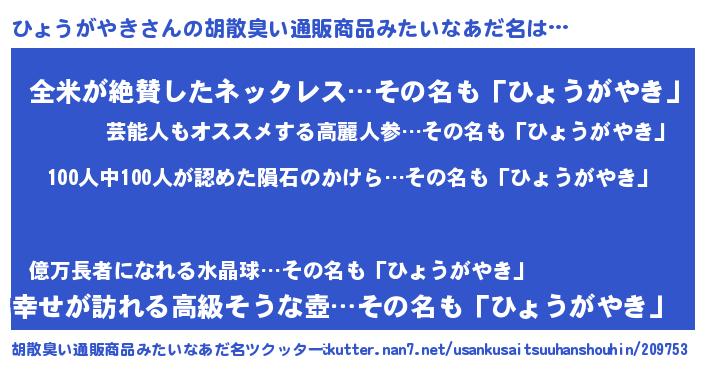 | ヒーロー風カッコイイあだ名 | 『正義の使者ひょうがやき』 |