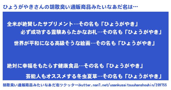 | 意味不明あだ名 | 『ひょうがやきフォーエバー』 |