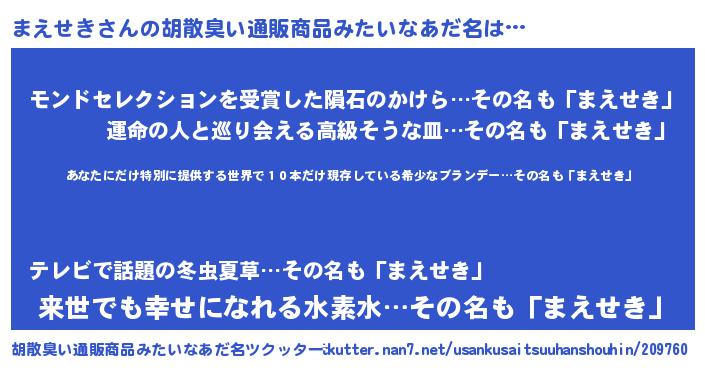| ヘコむあだ名 | 『まえせき(苦笑)』『酢こんぶ』 |