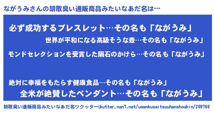 | ヒーロー風カッコイイあだ名 | 『天空の使者ながうみ』『天弓騎士ナガ』 |