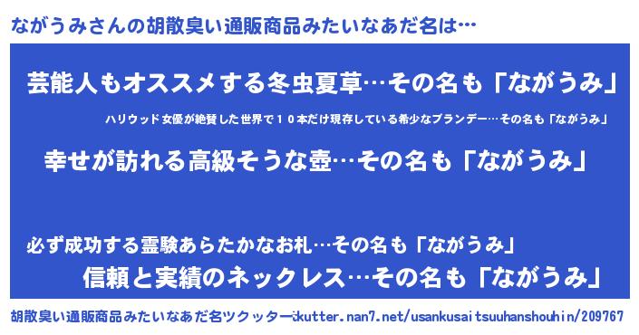 | 意味不明あだ名 | 『ながうみフォーエバー』『自称ながうみ』 |