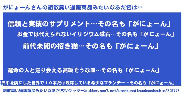 | 意味不明あだ名 | 『永久保存がにょーん』 |