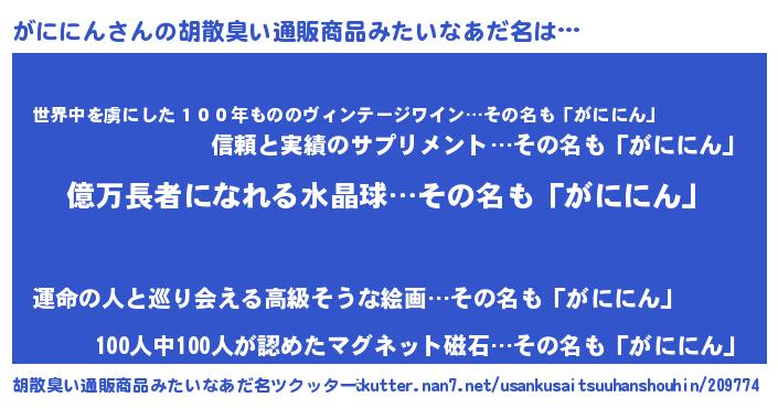 | ヘコむあだ名 | 『がににゅー』『がに太郎』 |