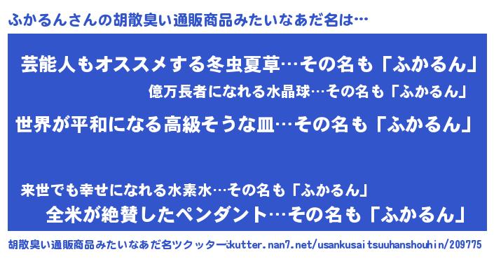 | 肩書あだ名 | 『ふかるん国家主席』『ふかるん閣下』 |