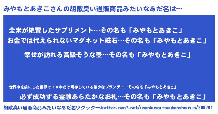 | 意味不明あだ名 | 『みやもとあきこフォーエバー』 |