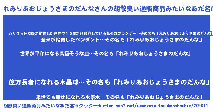 | 意味不明あだ名 | 『れみりあおじょうさまのだんなフォーエバー』 |