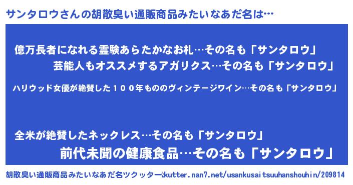 | ヘコむあだ名 | 『サンにー』『サンタロウ(苦笑)』 |
