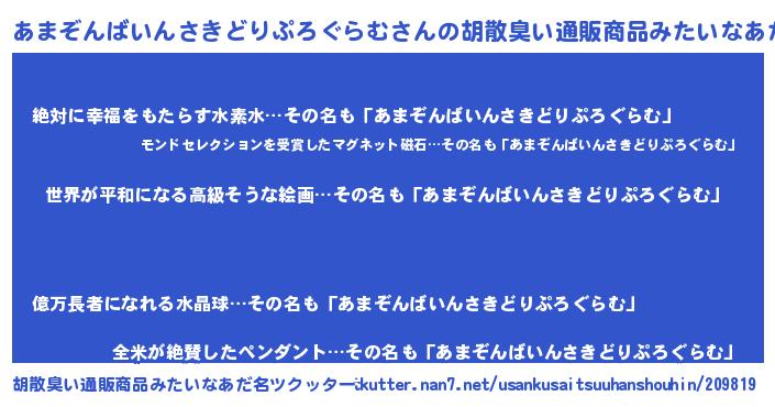 | ファンタジー風あだ名 | 『エターナルアマゾンバインサキドリプログラムー』 |