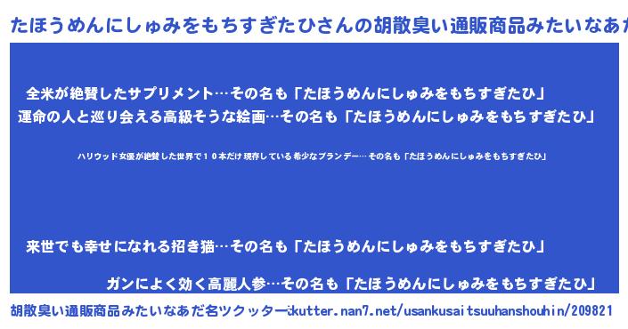 | 欧米人風あだ名 | 『トリンドルたほうめんにしゅみをもちすぎたひ』 |