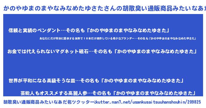 | ヒーロー風カッコイイあだ名 | 『愛の使者かのやゆまのまやなみなめたゆさた』 |